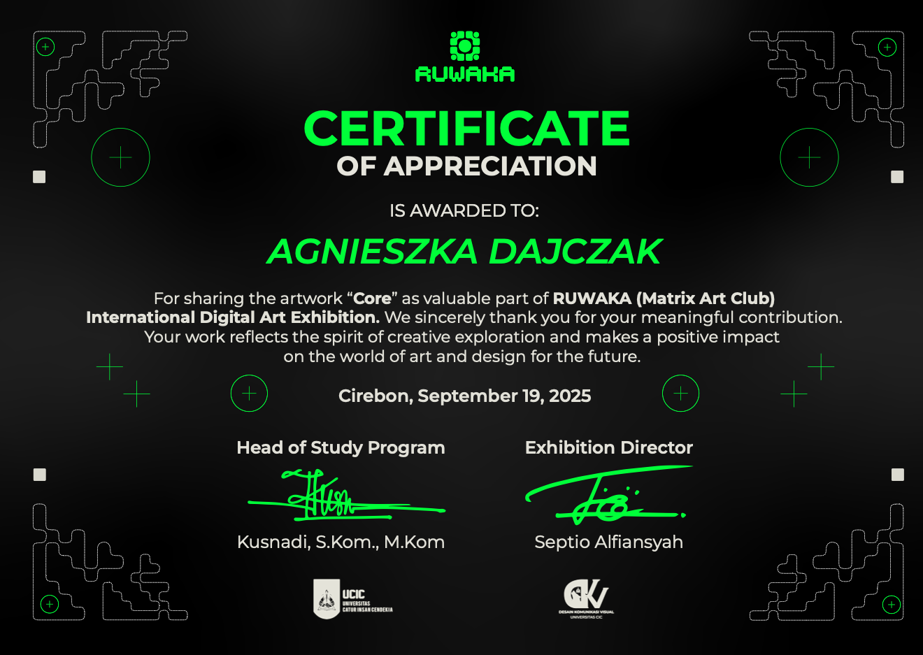 ARTIST CERTIFICATE AGNIESZKA DAJCZAK